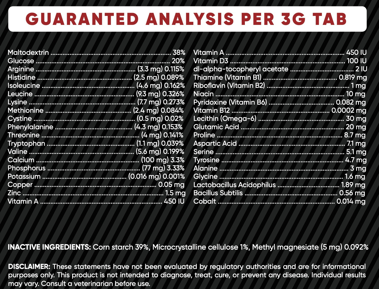 L-Carnitine has been shown to increase lean muscle mass, while Omega-6 fatty acids help support caloric absorption and healthy weight gain, especially in underweight, senior, or recovering dogs